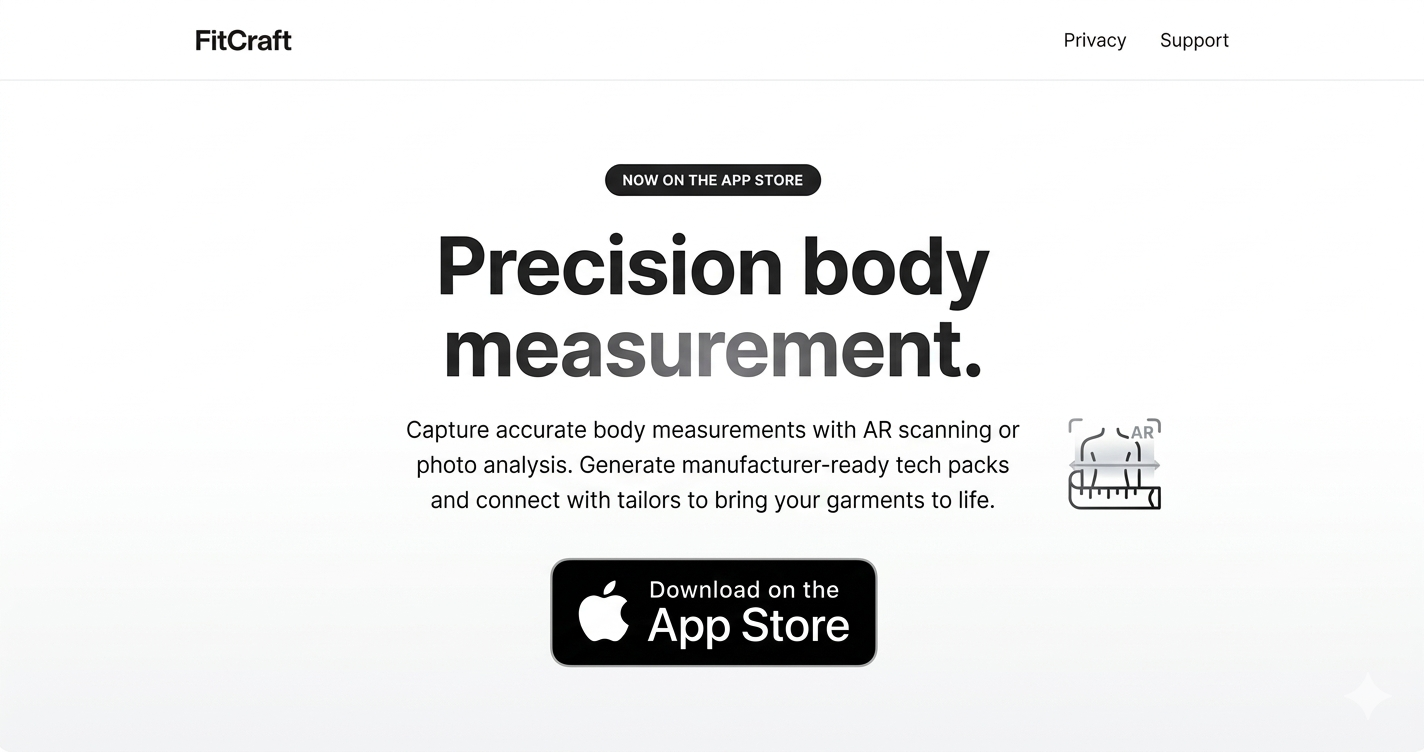 Lets custom-clothing brands capture accurate body measurements through a quick phone scan — delivering manufacturer-ready tech packs in seconds, eliminating costly sizing errors, and giving customers a perfect fit every time without a tape measure.